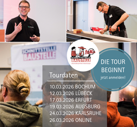 | | Die Schulungsreihe „Schnittstelle Baustelle“ für Fachleute aus Handwerk, Architektur und Planung geht dieses Jahr im März erneut auf Tour. Die Veranstaltung vermittelt an sechs Terminen praxisnahes Fachwissen zum Thema „Serielle energetische Sanierung“. Dabei erfahren die Teilnehmenden, wie sich Bestandsgebäude durch einen digitalisierten Bauprozess und die Vorfertigung von Holzbauelementen effizient energetisch sanieren lassen.