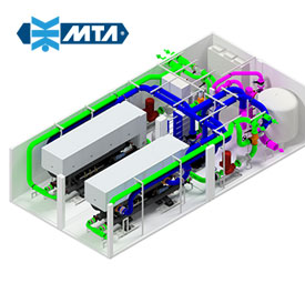 | | Die modularen Containerlösungen von MTA bieten platzsparende Kälte- und Heizzentralen. Mit integrierten Kältemaschinen oder Wärmepumpen sowie allen erforderlichen Komponenten stellen sie flexible und energieeffiziente Systeme für Kühl- und Kaltwasseranwendungen bereit. Die individuell anpassbaren Lösungen ermöglichen eine unkomplizierte und kostensenkende Installation.