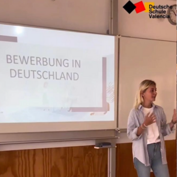 ¿Cómo se realiza una solicitud para una universidad alemana? Nuestra asistente de lengua del DAAD en Valencia, preparó e impartió un taller de preparación para entrevistas y redacción de cartas de motivación para el programa de prácticas laborales a los estudiantes de 10º grado de la Colegio Alemán en Valencia. Esta es solo una de las muchas actividades que realiza nuestro equipo del DAAD. | | | |