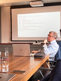 | | | Workshop at the Géza Anda Competition |  | Our partnership with the Géza Anda Piano Competition is reflected not only in special prizes. Following a concert at the Tonhalle Zurich, last year’s prize-winners were given an insight into the work behind a music edition. In a workshop, Henle Publishing Director Norbert Gertsch guided participants through the essential steps in creating an Urtext edition – offering a glimpse into editorial practice that met with great interest.