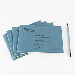 | | | New: Music notebook for beginners |  | Our new music notebook in landscape format, DIN A5 (21.0 x 14.8 cm) is the perfect choice for those just starting out with music notation. It comprises 32 pages, each with 6 staves. This format and helpful overviews of intervals, note names, note values and rests, as well as the circle of fifths, make this notebook an excellent companion for school and music lessons.