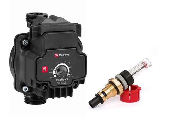 | | | | TacoFlow3 Surface: Effizienz für Flächenheizungen |  | Optimale Wärmeverteilung, minimale Druckverluste und geringe Geräuschentwicklung: Dank stufenloser Regelung ist die TacoFlow3 Surface äußerst effizient und das in einem besonders kompakten Format. Die leistungsstarken EMC-Motoren gewährleisten optimale Wärmeverteilung im Fußbodenheizungssystem.